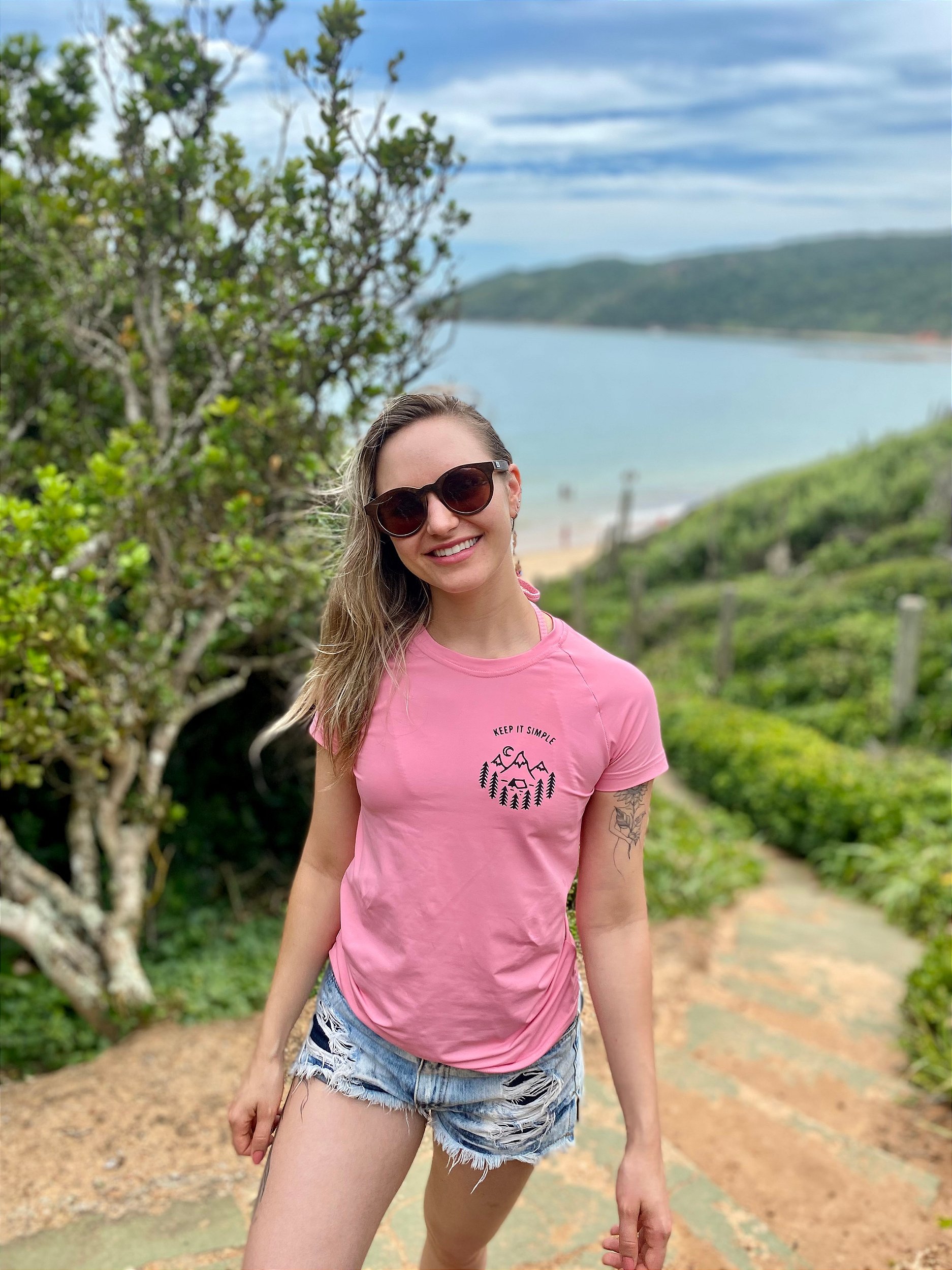 Baby Look Raglan Feminina em Malha Performance Fit Rosa Candy 92% poliamida 8% elastano com proteção UV, perfeita para prática de atividades físicas e outdoor.