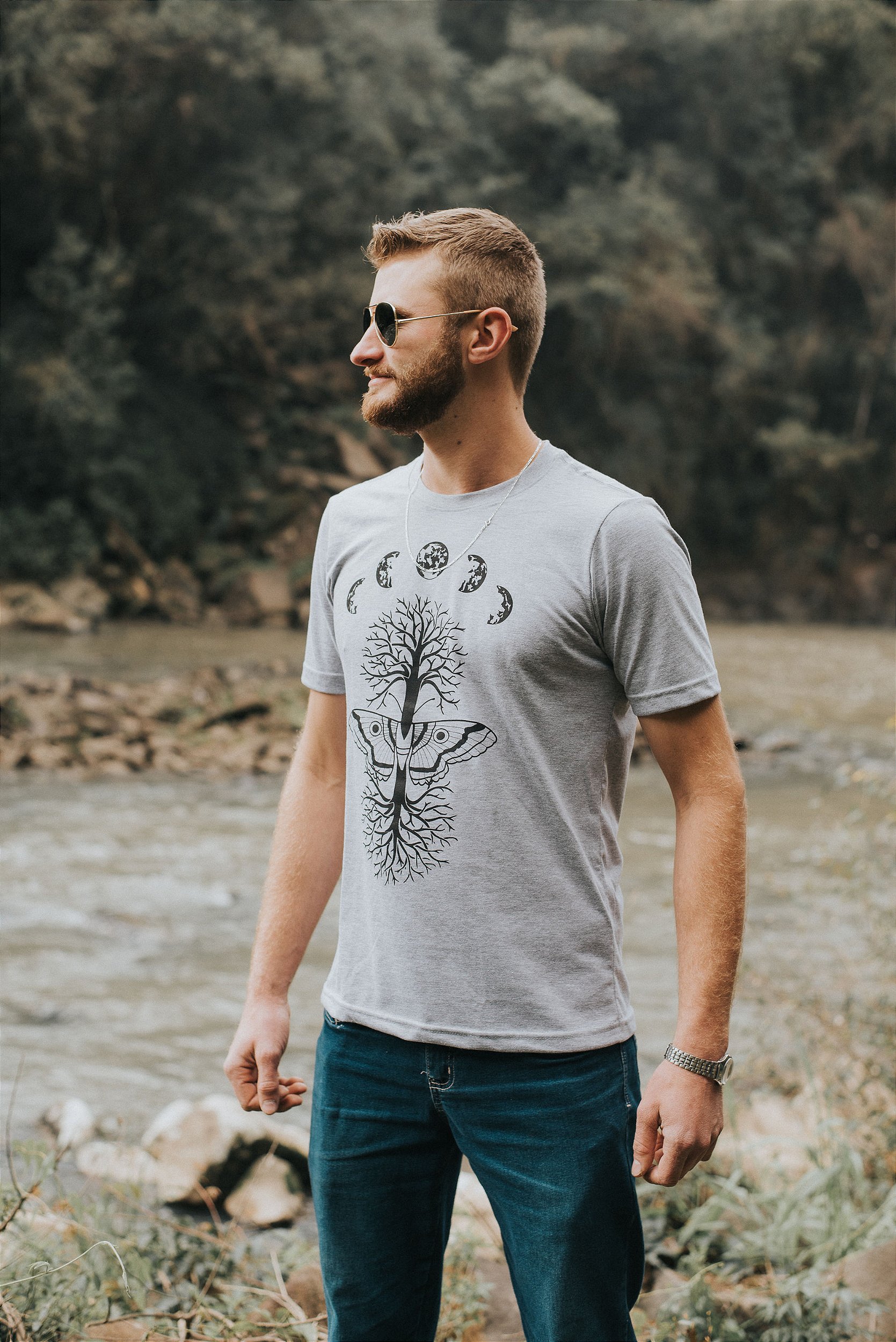 Camiseta Fases em malha Ecológica 50% algodão orgânico e 50% poliéster de garrafa PET cor Cinza Mescla com Estampa frontal em serigrafia preta