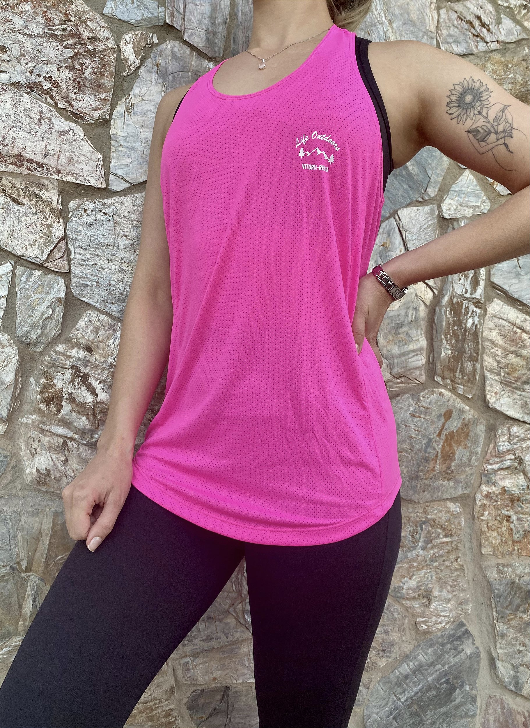 Regata fitness feminina em malha furadinha 100% poliamida, super leve, confortável e fresquinha. Perfeita para atividades físicas e outdoor!